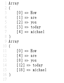 以上範例的第一個輸出結果與第四個輸出結果一樣,單詞數量都是 5,第二個與第三個輸出結果如下:$str = "How are you today michael?";
