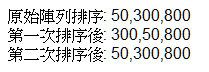 以上範例輸出結果如var Arr = ['50','300','800'];