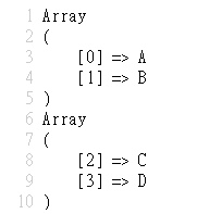 以上輸出結果如$Array1=array('A','B','C','D');