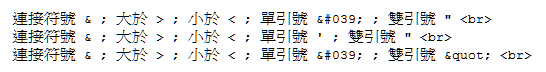 檢視原始碼可以看到連接符號 & ; 大於 > ; 小於 < ; 單引號 ' ; 雙引號 "