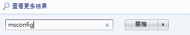 上圖為 Windows 7 左下角「開始」鍵打開後的搜尋框,請直接輸入「msconfig」並按下 ENTER 即可。