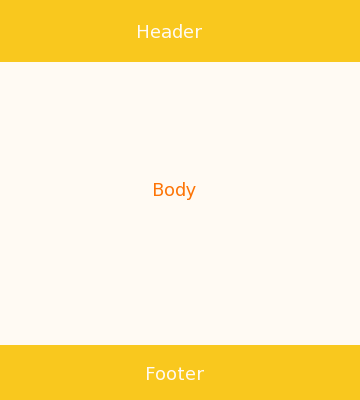 假設我們要設計的就是這樣單欄式的一個頁面,也就是左右沒有其他欄位,但至少也要分為最上方的 Header 標頭、中間的 Body 主要部分以及最下方的 Footer 頁腳等區塊,將每個區塊劃分出來後,就能夠很容易的在各區塊內增加網頁內容,為了能夠容易表達如何排出這樣的網頁排板,以下分為 CSS style 以及 HTML Code 的兩個部分,將此兩個部分結合在一起就能夠完成。