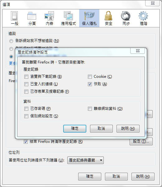 關閉 FireFox 時自動清除快取檔案