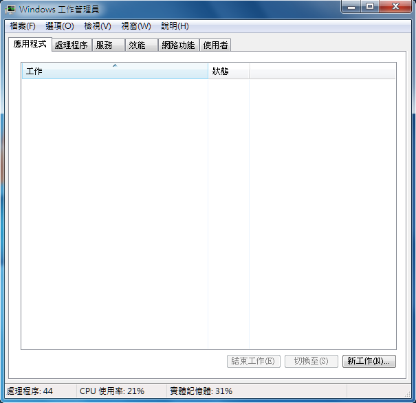 Windows 7 工作管理員可以看到處理程序的統計,CPU 的使用率以及實體記憶體的使用量,若您查覺到哪些部分有異常,可以從應用程式、處理程序以及使用者頁籤去仔細查詢,想辦法找出是哪個環節出了問題。